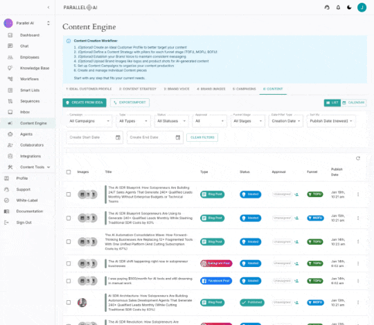Parallel AI replaces Clay, Instantly.ai, Blaze, ChatGPT, Claude, Jasper, and 8+ other tools with one unified platform that connects to your specific business context. Save $400+/month while automating content, leads, and customer conversations. Not generic AI. Your AI.